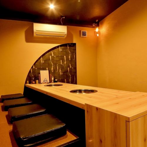【カウンター席ございます!お一人様からお気軽に】お一人様やデートなど、少人数でのご利用に最適なカウンター席をご用意しております。ゆったりとした感覚で設計されており、隣を気にせず自分のペースでお食事を楽しめます。落ち着きのある雰囲気が魅力で、お酒を片手にくつろぎながら焼肉を堪能したい方におすすめです。