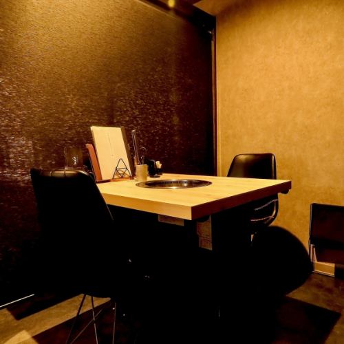 【2名様用テーブル席あり】コンパクトながらも快適に過ごせる2名様までご利用いただけるテーブル席となっております。ちょっとしたお食事やデートなどの利用にぴったり◎自然に会話が楽しめるような、空間づくりにもこだわっています。静かに焼肉を味わいたい方にもおすすめの、居心地の良いお席です。ぜひご利用ください。